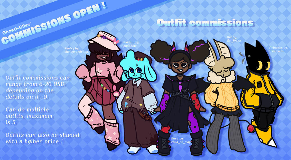 !! Please note that Outfit commissions and Background commissions are exclusively for USD payment only !!